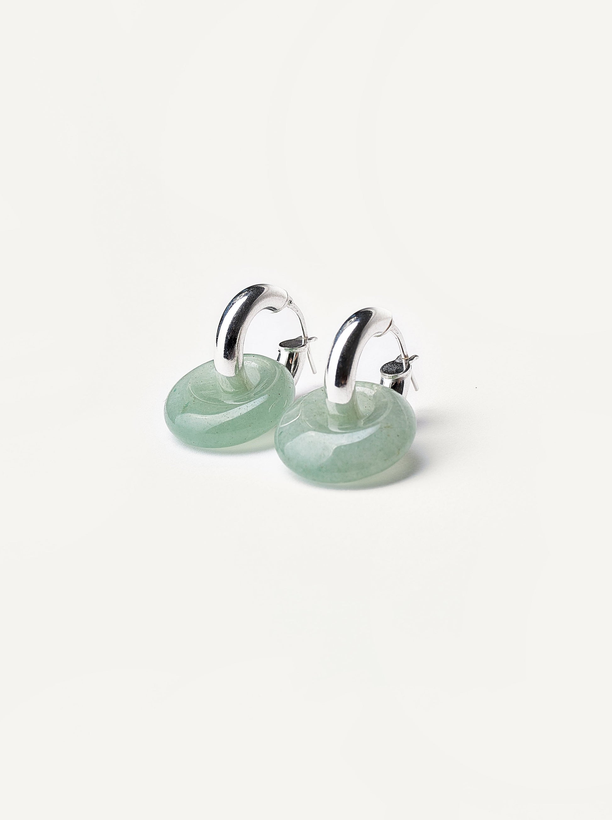 A pair of hoops earrings made of sterling silver 925 withe green aventurine.