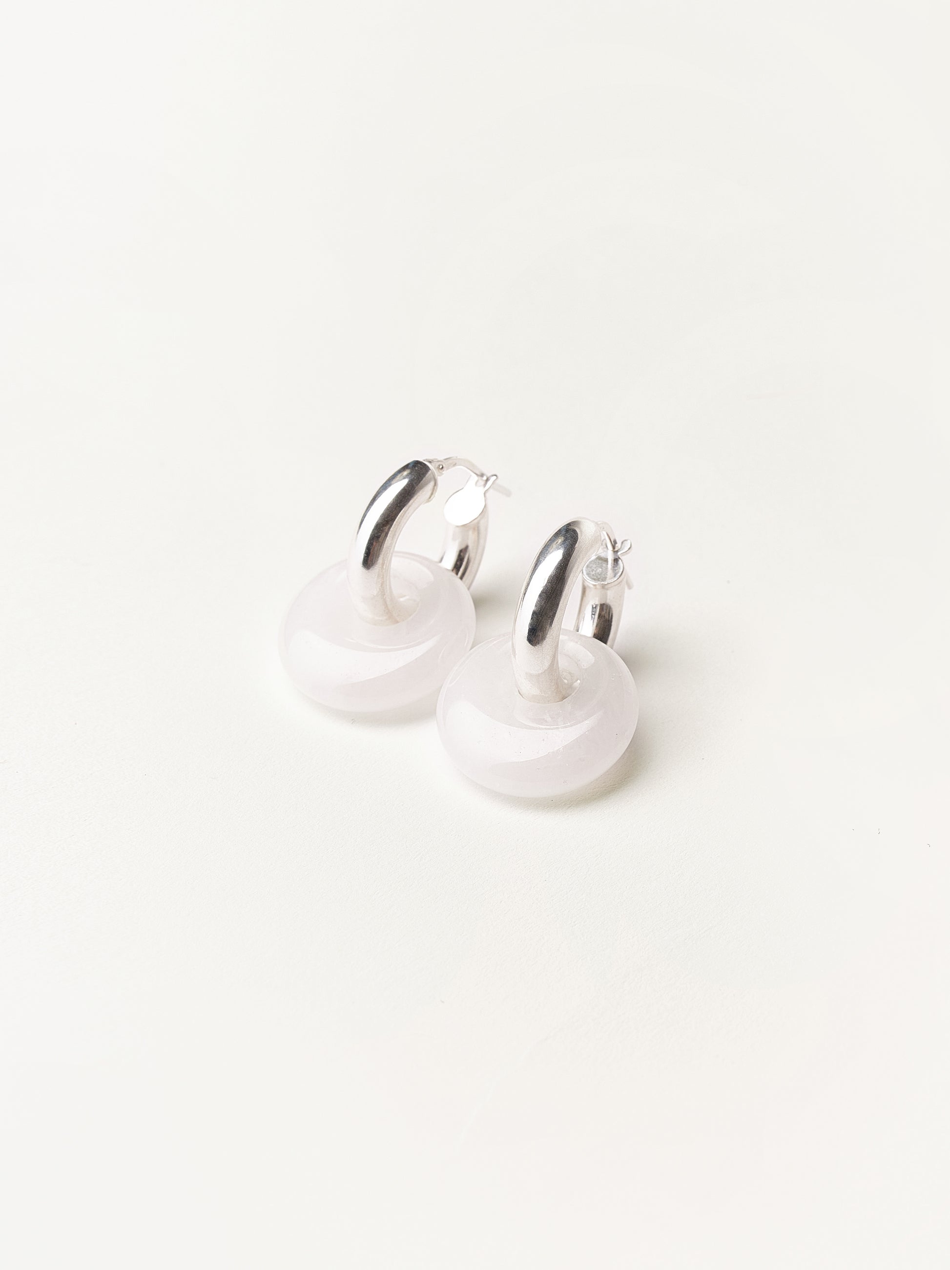 A pair of hoops earrings made of sterling silver 925 with white quartz.